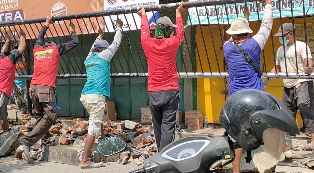 Bupati Ponorogo, Sugiri Sancoko bergerak cepat dalam memenuhi salah satu janji politiknya yaitu merobohkan tembok Pasar Stasiun, Rabu (03/02/2021).
