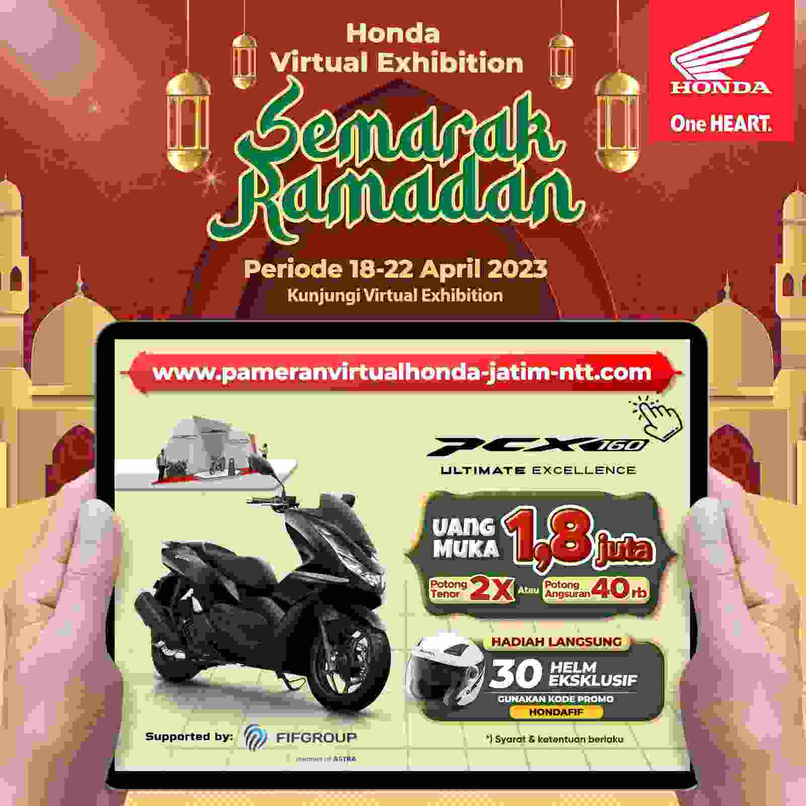 Spesial bulan Ramadan tahun ini, PT. Mitra Pinasthika Mulia (MPM Honda Jatim) distributor sepeda motor Honda wilayah Jatim & NTT bersama dengan jaringan dealer Honda wilayah Jatim & NTT, memberikan penawaran menarik untuk masyarakat melalui Pameran Virtual dalam program Honda Virtual Exhibition. Honda Virtual Exhibition berlaku pada periode 18 – 22 April 2023.