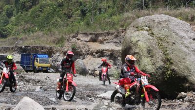 Ditenagai mesin bertenaga dengan karakter tenaga merata di setiap putaran, CRF250R memberikan akselerasi agresif sekaligus stabilitas luar biasa saat melibas medan ekstrem. Performa ini menjadi dukungan penting bagi Arsenio untuk bermanuver cepat di tikungan tajam serta menjaga kecepatan di lintasan berbatu dan menanjak khas Sirkuit Bantir.